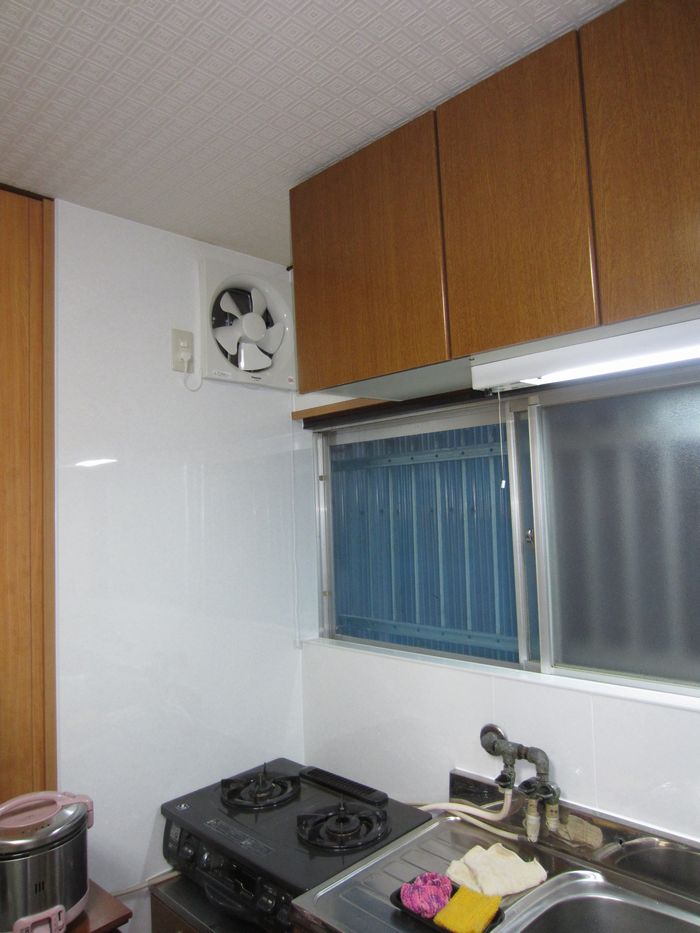| 工事名称 | キッチンパネル貼り工事 | お悩み | 流し前のキッチンを綺麗にしたい |